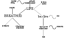 Semantic variation and shifting are just as essential to trace through time as phonological evolution. Certain semantic associations can be backed up by phonological evidence (cf. BREATH(E)/LIFE/LUNG), but others cannot. Diagrammatic representations of the patterns of historical semantic association in TB/ST are an integral part of STEDT, via "metastatic semantic flowcharts", such as the one shown here.