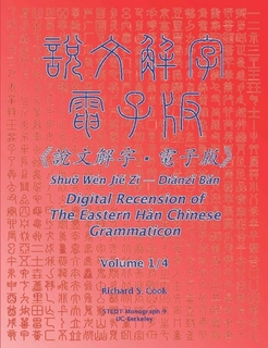 Number 9 in the STEDT Monograph Series is a high-resolution edition of《說文解字 ‧ 電子版》Shuō Wén Jiě Zì — Diànzǐ Bǎn: Digital Recension of the Eastern Hàn Chinese Grammaticon, by Richard S. Cook (Doctoral Dissertation, UC Berkeley, Dept. of Linguistics, 2003). This work, the first-ever reconstruction of a complete Shuō Wén (AD 121) Urtext, presents the results of more than a decade of effort directed at elucidating the major findings of the principal 清 Qīng Dynasty commentary edition (段玉裁 Duàn Yùcái, 1815). In four-volumes (2,400 pages), this monograph situates the 19th c. findings firmly in the context of traditional and modern Chinese lexicography, with complete mappings to important lexica, and Old and Middle Chinese readings. Volume 1 documents the recension and phonological findings; Volumes 2 & 3 contain the concordance data and source mappings; Volume 4 (now available for the first time) contains the complete reconstructed Shuō Wén Urtext typeset in Seal Script (vertical text, right-to-left). Each of the four volumes must be ordered separately.